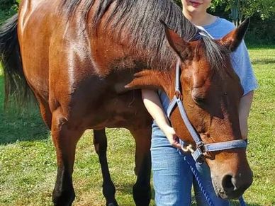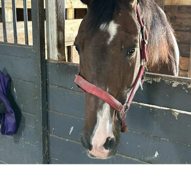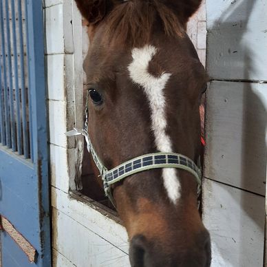 Brandy arrived Jan 13, 2023. This one is a real Character. She is sweet, loves to eat and gives an occasional love bite to her furry friends passing by. Brandy, unfortunately, can no longer be ridden. She requires pain management. Brandy thrives from attention and gives a lot of her personality to our community program participants. Brandy cant have treats, she is on a diet!