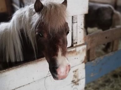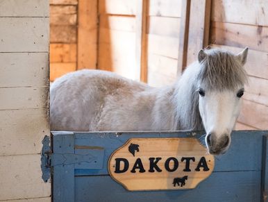 Dakota arrived alongside Caspian. He is a grey shetland cross pony who is very intelligent. He is the Houdini of the barn, meaning he can get out of anything. He is certainly an escape artist!