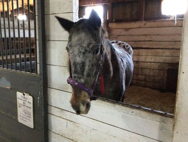 Jewels was born in 1994. She's a thoroughbred mare who sustained knee injuries. Jewels does best with people who are quiet and she thrives off calm reassurance. Recently Jewels was diagnosed with Melanoma. She is currently doing well and not experiencing any effects from the diagnosis. However; her near future could be very different. In the meanwhile, Jewels is pasturing with her buddies River and Sizzle. The three of them are very active and have a lot of fun together, frolicking about!